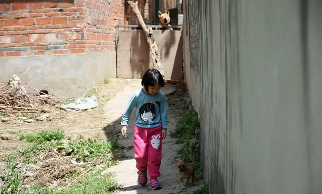 生活中的小涵特别喜欢小动物,常常一个人在田野里小路上独自玩耍