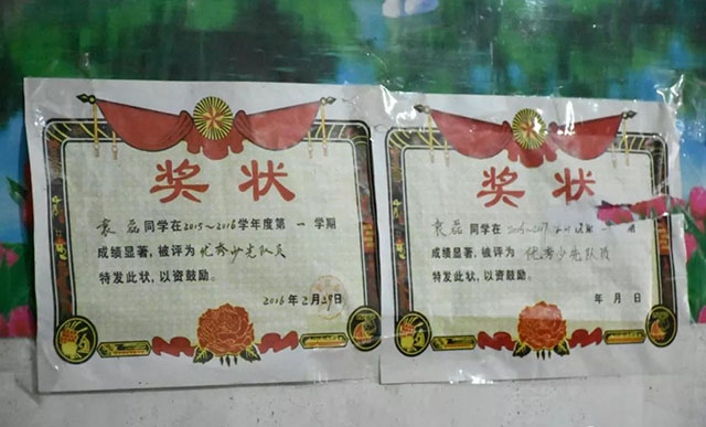 图为小磊获得的奖状