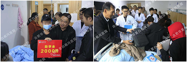 会后,安徽省希望工程青少年发展基金会、安徽省希望工程办公室、名蔻爱心基金等相关领导,为第三批受助患者送去慰问品、颁发助学金,在为他们送去温暖的同时,也给予他们更多的康复信心。