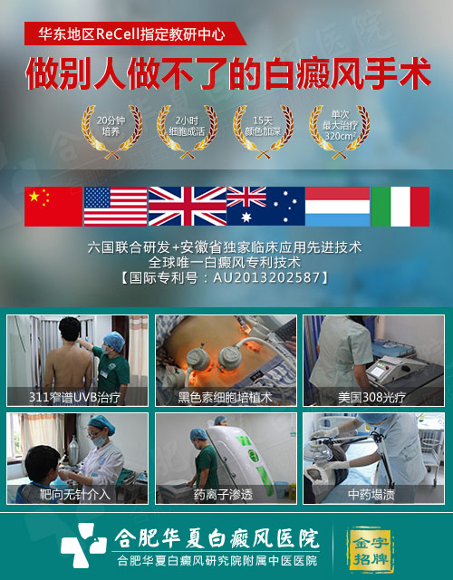 医院正不正规、专不专业对白癜风的治疗十分重要,包括治疗的费用、效果等深受影响,正规医院敢于接受人民的监督!作为“安徽省白癜风中西医结合规范化诊疗示范医院”,合肥华夏白癜风医院专注于中西医结合、精细化治疗白癜风,以临床科研为基础、以白癜风临床诊疗为重点、以患者康复疗效保障为目的。