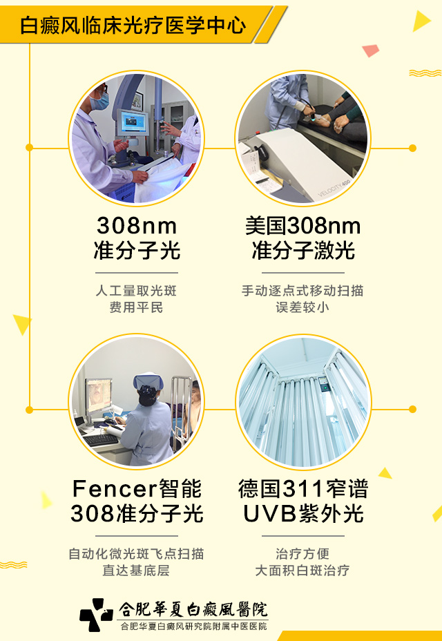 作为安徽省白癜风临床规范化诊疗基地,合肥华夏白癜风医院不仅拥有华东唯一的智能Fencer308技术,还拥有308nm准分子光技术,美国308nm准分子光治疗、德国311窄谱UVB治疗体系,率先打造华东地区白癜风临床光疗医学中心。
