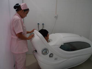 中药熏蒸,综合了水浴、药浴、熏浴、蒸汽浴的保健特点,集中了中医药疗、热疗、超声波雾化、汽疗、药离子渗透等多重治疗功效于一体,具有很高的实用和推广价值。