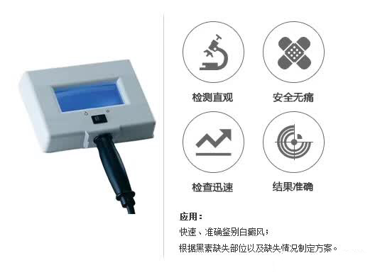 3、有效区分相似疾病:通常情况下:伍德灯下白癜风的皮损为纯白色,与周围正常皮肤对比鲜明,界限清楚。而脱色素性痣、白色糠疹、结节性硬化、麻风的色素减退斑等在伍德灯下为黄白色或灰白色,花斑癣为棕黄色或黄白色,利用伍德灯可以有效区分白癜风。