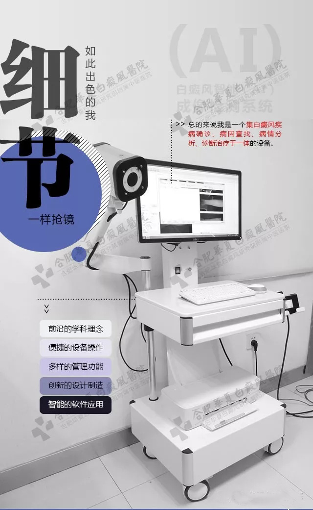作为当前白癜风诊疗领域最先进的检测平台,白癜风智能(AI)成像检测系统在对白癜风的病因探索、诊疗理念等方面有着与众不同的鲜明特点。
