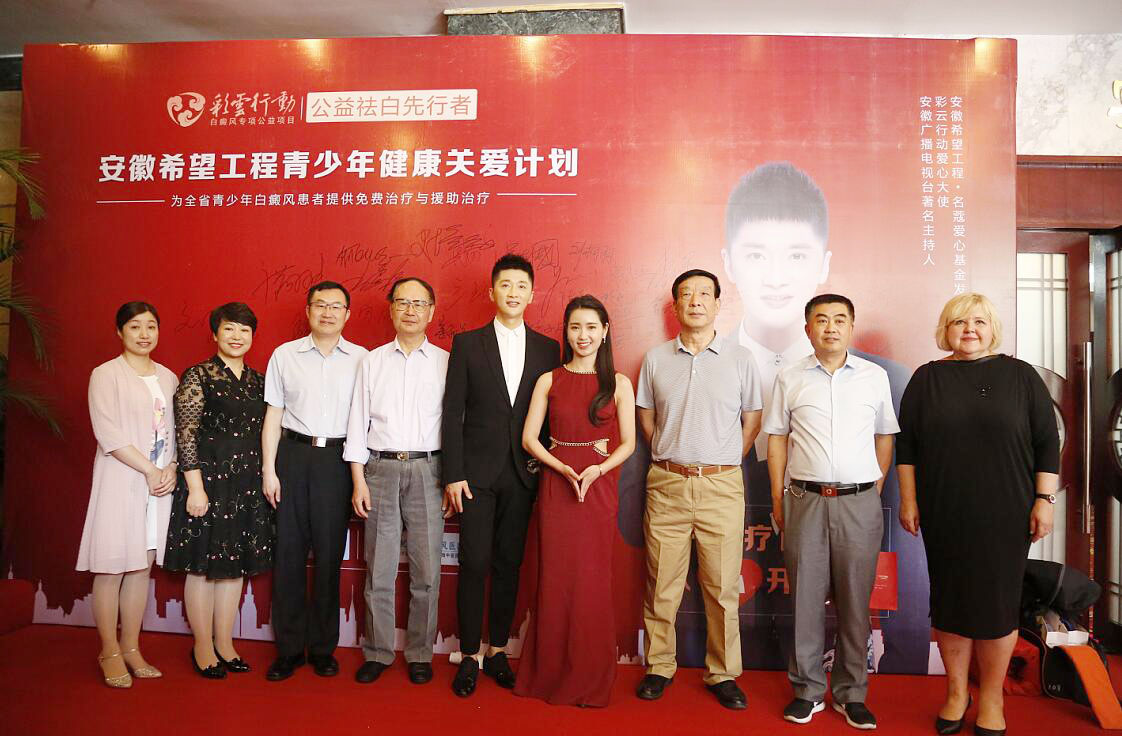 基于此,由安徽希望工程、安徽省青少年发展基金会共同发起,成立安徽省首个省级白癜风专项公益项目——“全省青少年儿童健康关爱计划之彩云行动”。力邀安徽电视台著名主持人罗彬先生担任爱心大使。旨在唤起社会对于儿童青少年白癜风人群的关爱与关注,大力普及白癜风疾病预防的科学知识,凝聚公益力量,传递人性温暖;帮扶更多患者得到有效治疗;早日摆脱疾病困扰,重拾健康肤色。搭建公益平台,整合国内外最优势的专家资源,全面引进国际最新技术,据悉本次“彩云行动”项目公益爱心顾问专家团成员有:中国中西医结合学会皮肤色素病学组创始人、上海市第一人民医院皮肤科朱光斗教授、中国人民解放军总医院(301医院)皮肤科刘军连教授、北京协和医院刘志飞教授、首都医科大学附属北京天坛医院陈长斌教授、乌克兰国家研究生培训医学研究所伊琳娜-波波娃博士、合肥华夏白癜风医院齐家辉主任、安徽省首届“中国好人”葛杨老师等,发挥各自专业,帮扶儿童青少年患者得到有效的治疗和心理重建,尽早摆脱疾病困扰。
