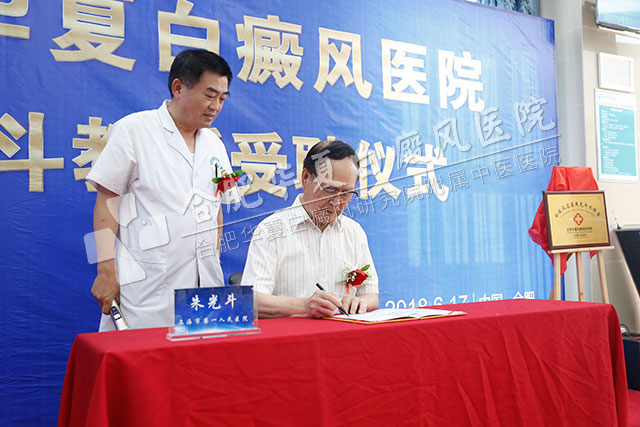 基于此,由彩云行动指定爱心医院合肥华夏白癜风医院举办的“朱光斗教授受聘仪式”于2018年6月16日正式举行,标志着“白癜风名医朱光斗工作室”正式成立,同时朱光斗教授将担任医院学术顾问、学科带头人,指导医院临床与学术交流。