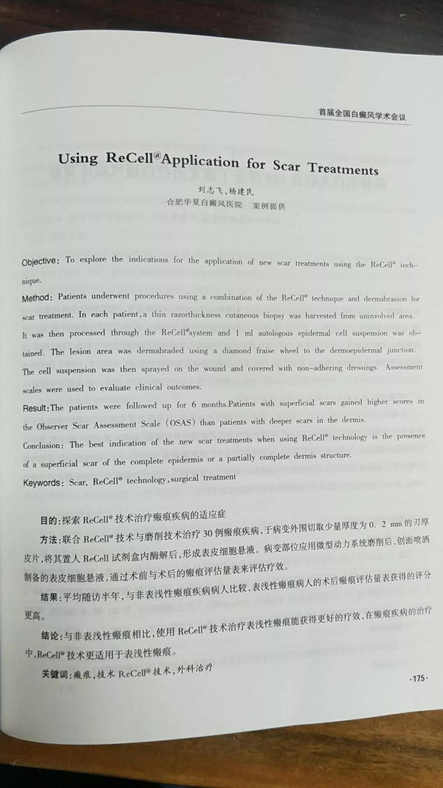 作为国内ReCell技术指定专家,协和医院刘志飞教授在此次2018全国首届白癜风学术会议上对“应用自体皮肤细胞移植”进行详细分析,更将“研究型临床”医院概念带进大众视野,清晰白癜风专业医院的未来发展,与国内白癜风大咖进行研讨交流。