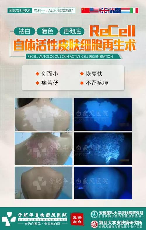 ReCell自体活性皮肤细胞再生术,是一种针对大面积白癜风的专项技术。以其疗程短、一次性治疗面积大、不破坏机体免疫力、术后效果自然等优势,受到无数国内外专家推崇,获得众多国内外权威机构认证并推广。