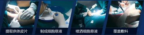 采用国际领先的融合细胞“上喷”技术,提取微小面积供体皮面获得的上皮细胞悬液,即可覆盖较大面积创面,从而实现“以小治大”的目的。