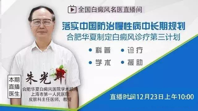 第二,2018年12月23日上午10时,特邀上海市第一人民医院皮肤科主任朱光斗教授开设白癜风疾病科普知识讲座;