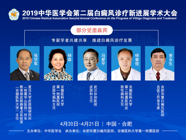 此次2019白癜风诊疗新进展学术大会,邀请嘉宾将覆盖国内皮肤学界具影响力的专家学者,包括安徽医科大学第一附属医院杨森教授、复旦大学皮肤病研究所所长张学军教授、武汉协和医院皮肤科主任冯爱平、安医大第二附属医院皮肤科主任杨春俊教授及合肥华夏白癜风医院查永生主任等全国知名白癜风专家,全面展现和交流白癜风领域的新成果、新进展与新趋势。