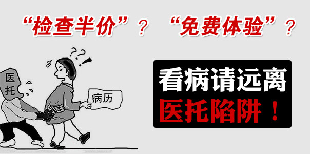 近期有接到我院白癜风患者反映,有医托以“检查半价”“免费体验”“治疗援助”等名义说服其到医托口中指定的小诊所就诊,结果费用奇高,疗效甚微甚至病情加重。还有一些情况类似于,乘坐出租车前往我院就诊而司机强拉其到某院某诊所就诊,导致患者上当受骗,社会影响恶劣!